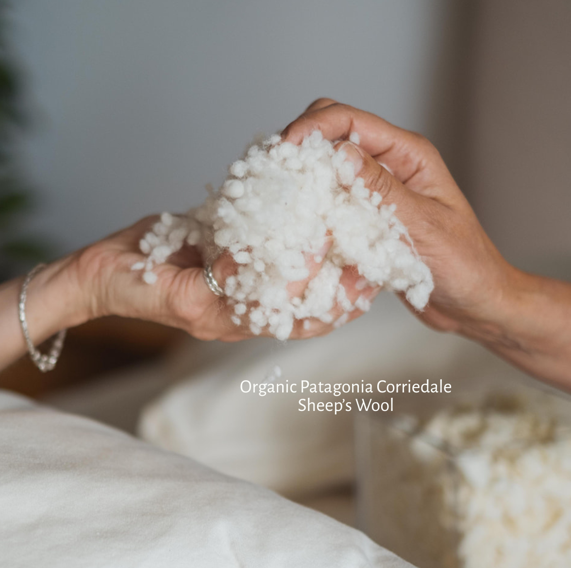 Pillow Fill: Soft, breathable organic wool that's naturally hypoallergenic and thermal regulating.
